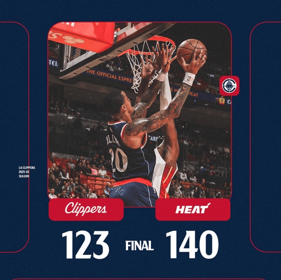 虎撲12月02日訊 NBA常規(guī)賽,快船對陣熱火的全場比賽已結(jié)束,快船123-140熱火。