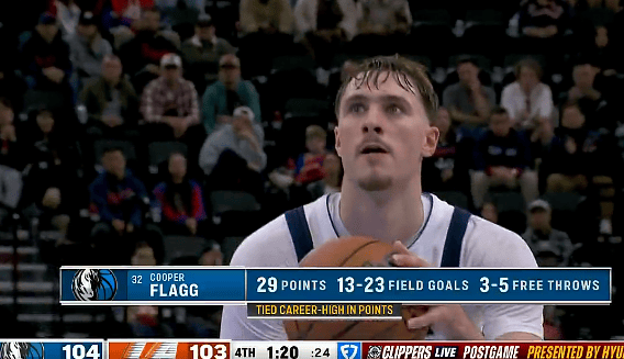 第四節(jié)比賽中,砍下快船弗拉格兩罰全中砍下生涯新高31分,生涯獨(dú)行俠1分鐘領(lǐng)先快船3分。新高行俠