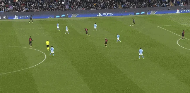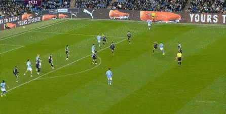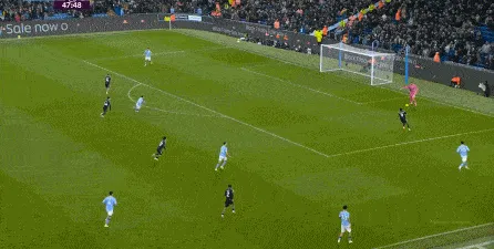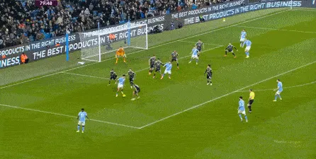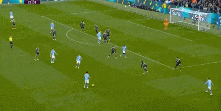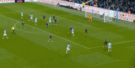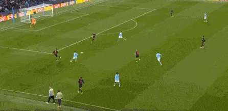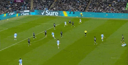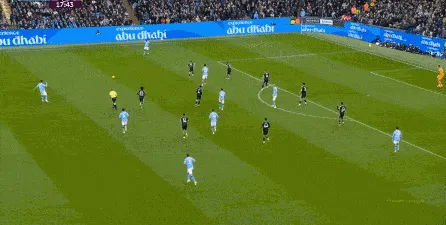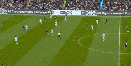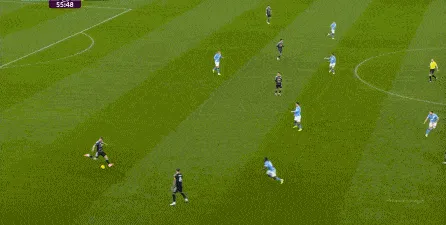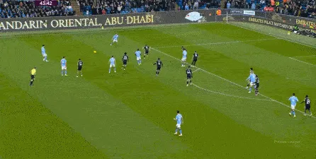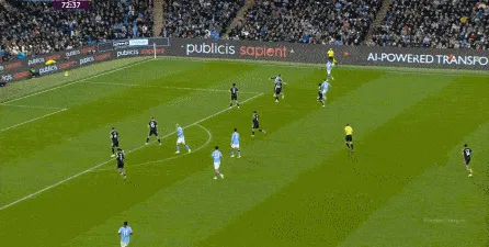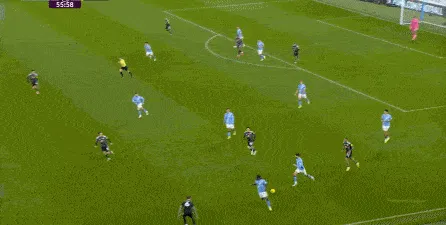 對(duì)于曼城來(lái)說(shuō),這種相對(duì)粗線天的進(jìn)攻就相對(duì)好防了,所以在防住利茲聯(lián)的幾次打身后嘗試之后,曼城重新拿回球權(quán),在多庫(kù)這一側(cè)形成了威脅進(jìn)攻。