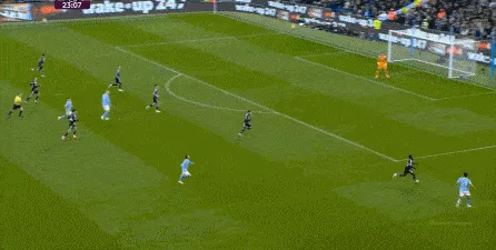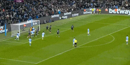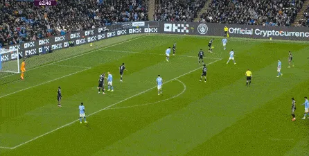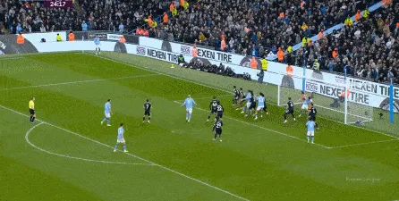 于是在第24分鐘,曼城制造了這一側(cè)的角球,隨后連續(xù)形成威脅,從而收獲了第二球: