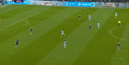 其實(shí)都有相當(dāng)?shù)耐{,這讓利茲聯(lián)的壓力很大,而且在左側(cè)的帶動(dòng)之下,曼城的右路進(jìn)攻也隨之上線: