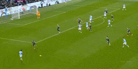 但防守端面對(duì)的壓力始終存在,這一點(diǎn)并沒(méi)有得到實(shí)質(zhì)性的解決,于是在第66分鐘,利茲聯(lián)一個(gè)大腳,直接沖擊曼城后衛(wèi)線,便制造了點(diǎn)球: