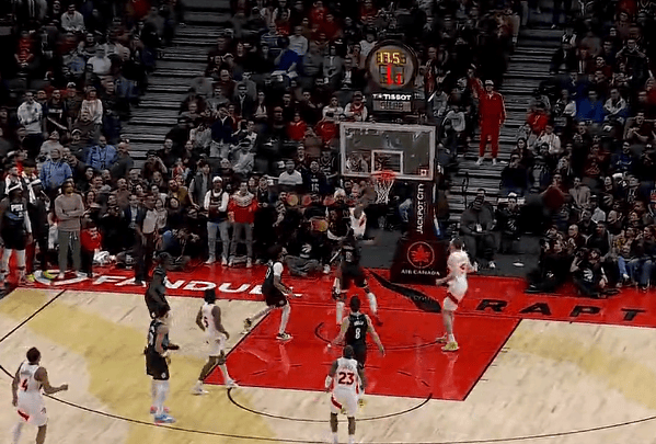 NBA常規(guī)賽,開拓者對陣猛龍的底線定勝比賽正在進行中。