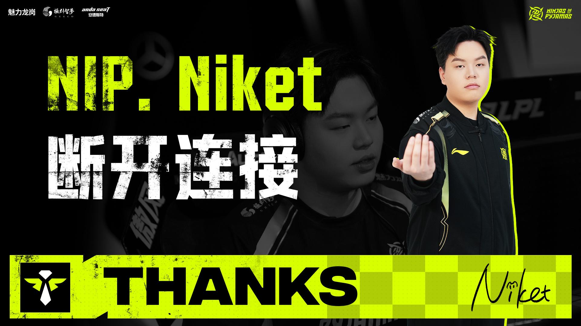 虎撲11月30日訊 NIP發(fā)布人員變動公告,輔助選手Niket正式離隊,具體內(nèi)容如下: