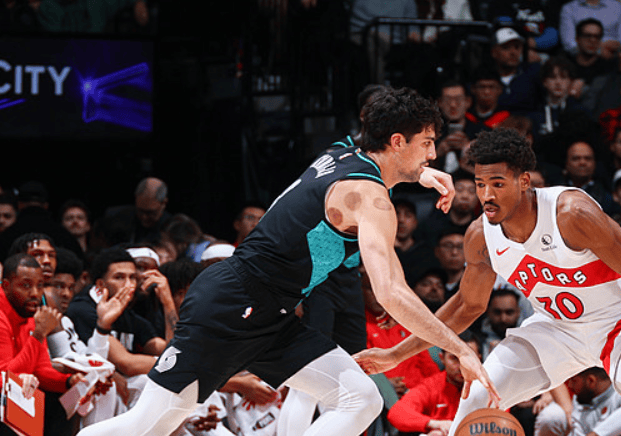 第二節(jié)比賽結(jié)束,亞上猛龍65-59領(lǐng)先開拓者。中分中得助攻