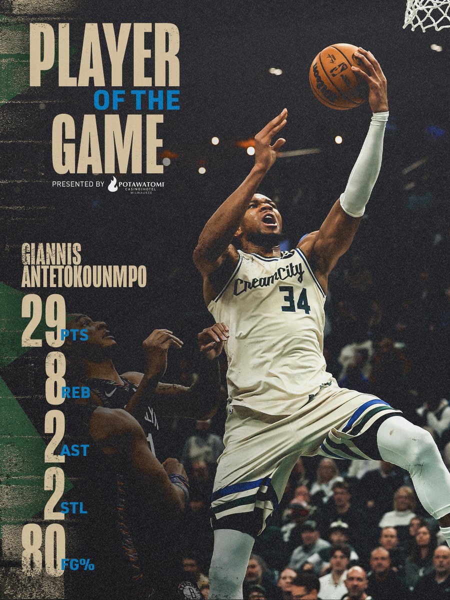 賽后,當(dāng)選雄鹿官方更新X,曬出一張雄鹿球員揚(yáng)尼斯-阿德托昆博的賽場(chǎng)照并祝賀其當(dāng)選為本場(chǎng)最佳球員。