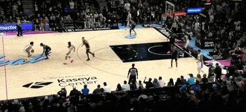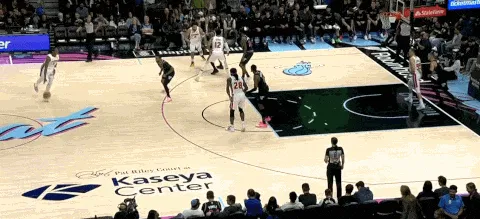這個回合比較巧妙和連貫,鄧羅和斯圖爾特的away screen沒有做成后,鄧羅迅速來到中路做背掩護,三個人打了一次西班牙掩護的發(fā)起,鄧羅的背掩護成功擋住了想要換防的阿德巴約,給了CC直接扣空籃的機會。