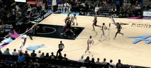 2. 仍然是希羅的對位人給CC掩護,但這次CC迅速的轉(zhuǎn)身到右側(cè)從而避免了熱火的夾擊,希羅不得不防守CC,坎寧安突破急停中距離出手,希羅未能來得及干擾,CC的出手穩(wěn)穩(wěn)命中。