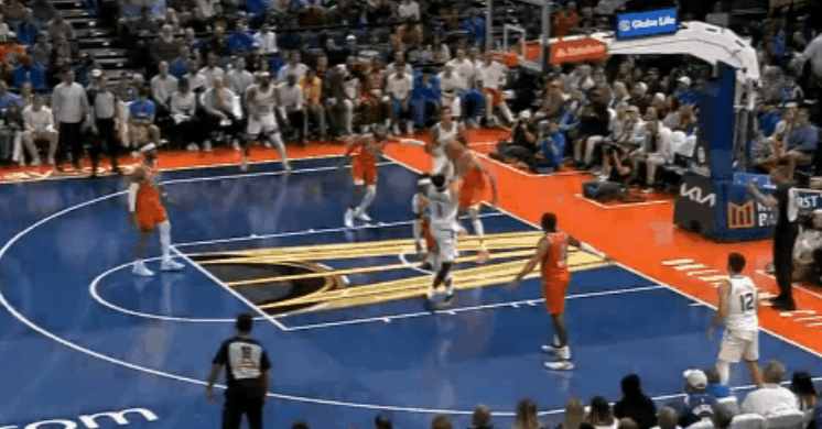 第三節(jié)比賽,對抗多爾打進(jìn)布克無懼身體對抗扛著多爾特,扛著空拋滯空拋投高難度打進(jìn)2+1。特滯投高
