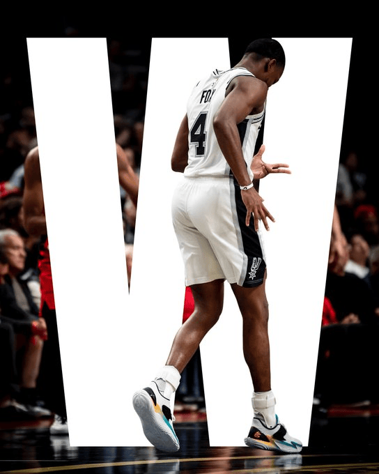 賽后,規(guī)賽馬刺官方發(fā)布贏球海報(bào),戰(zhàn)績并配文道:“取得勝利。升至勝負(fù)”