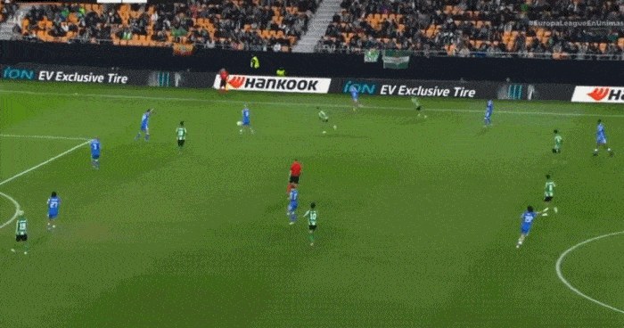 他在身體對(duì)抗中戰(zhàn)勝了摩洛哥卡魯阿尼后傳中,貝蒂斯1庫(kù)喬-埃爾南德斯門(mén)前甩頭搶點(diǎn)破門(mén)。板安