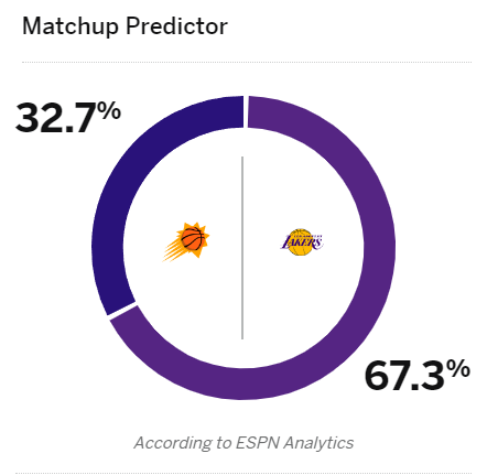 賽前,日湖人v人勝美媒ESPN預(yù)測(cè)本場(chǎng)比賽,賽湖湖人勝率67.3%占據(jù)上風(fēng),據(jù)上太陽(yáng)勝率為32.7%。流言率占? ?