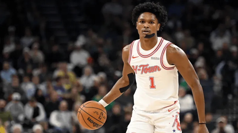 在最近對陣勇士的一場比賽前,火箭后衛(wèi)阿門-湯普森專注地看著手機上的一段YouTube精華視頻。
