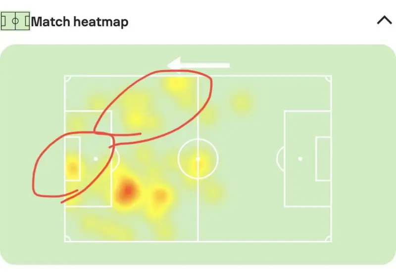 1)熱區(qū)進(jìn)一步的分散,去右路頻率明顯上升。。右路本身就是姆巴佩的舒適區(qū),在這個(gè)位置,完全有的打。。也是區(qū)里不少jr提過(guò)的,放“右邊鋒”的姆巴佩。