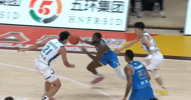 今日賽場,上海外援古德溫在快攻扣籃中同樣滑倒。樂部