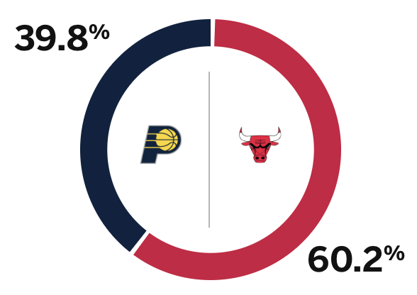 賽前,測步美媒ESPN預測本場比賽,公牛步行者勝率39.8%,牛勝公牛勝率60.2%。流言率公率