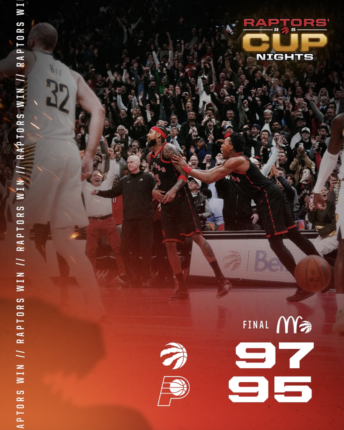 賽后猛龍官媒更新了X,媒曬曬出本場比賽的場海終場海報與球迷分享。