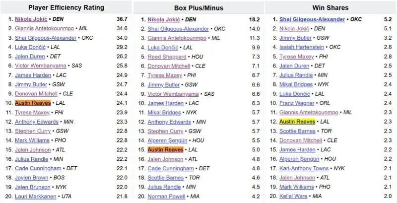 不夸張,上賽季的里夫斯已經(jīng)成長(zhǎng)為湖人三當(dāng)家,只看全明星后的話,他場(chǎng)均可以拿到22.8分,表現(xiàn)絕對(duì)是準(zhǔn)全明星水準(zhǔn),當(dāng)時(shí)甚至還出現(xiàn)了“里夫斯是否是聯(lián)盟最強(qiáng)三當(dāng)家”的討論。