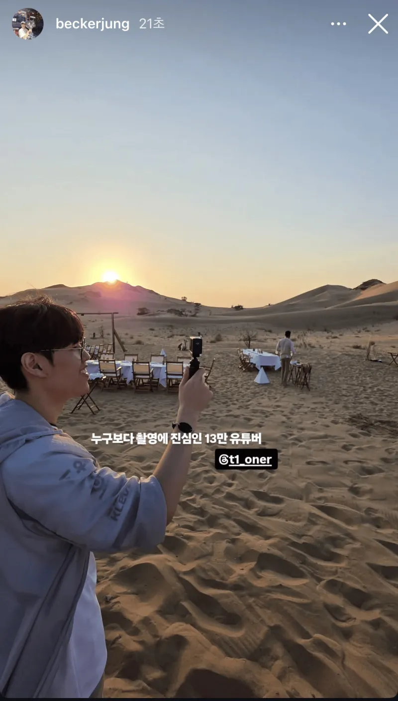 虎撲12月03日訊 T1團長更新Oner沙漠拍攝照:比誰都更努力拍攝的13萬粉絲油管主Oner。