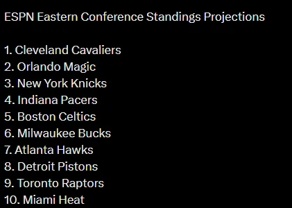 在本賽季開始前,ESPN預測了東部前十的球隊排名(見上圖)。
